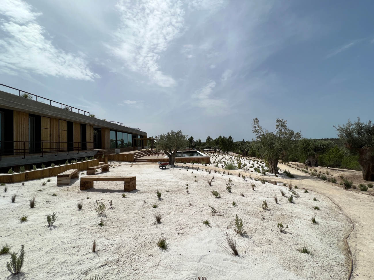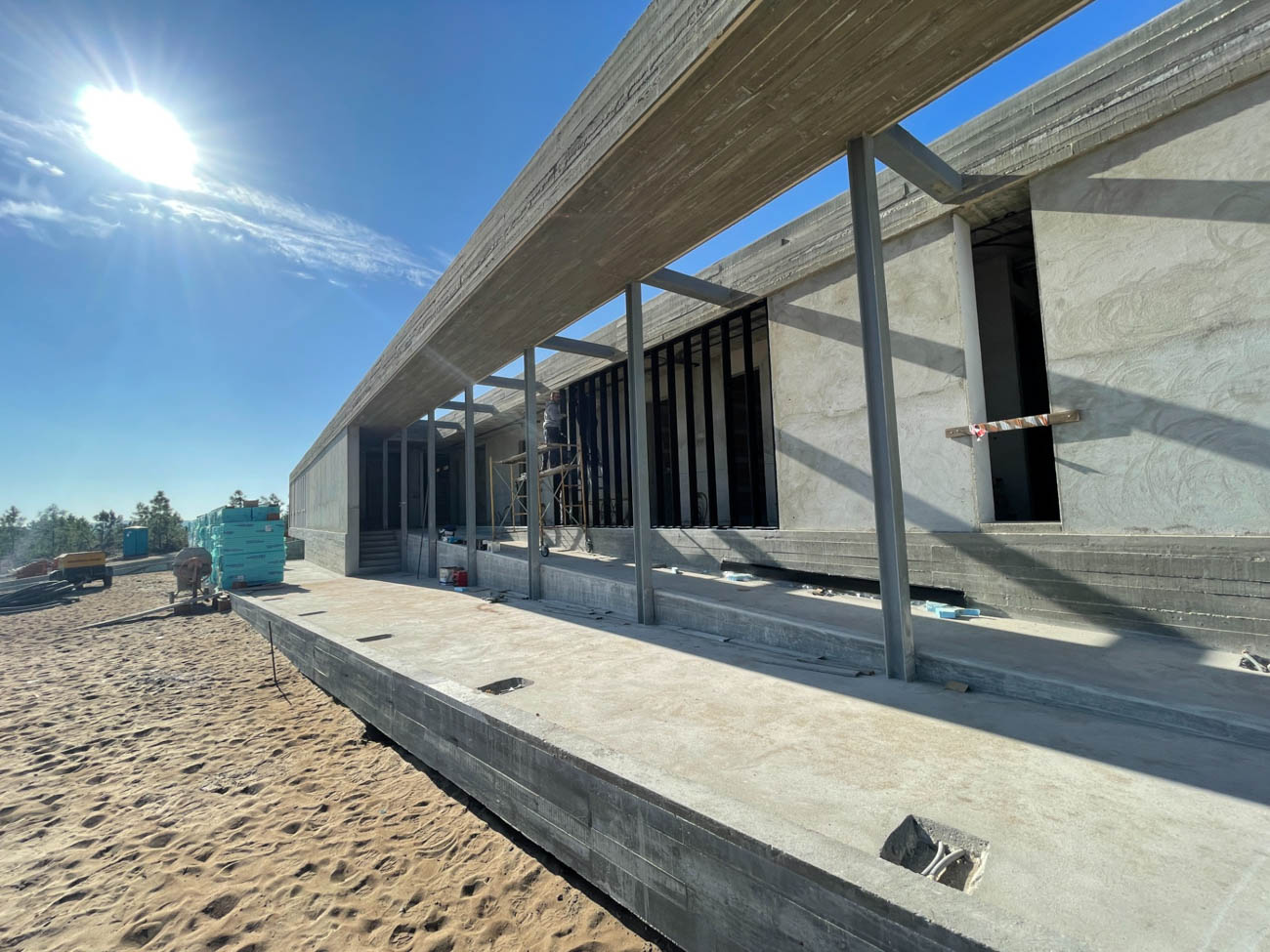 Single-family house, with 5 bedrooms, consisting of 2 floors and a swimming pool. Construction in reinforced concrete and metal structure. Concrete mat foundation, microcement and Terrazo coverings, automated glazing. Home automation system with control of lights, CCTV, sound, personalized cinema room. Landscape including playing fields. (Tennis Court, Petanque Field and Beach Volley Court)