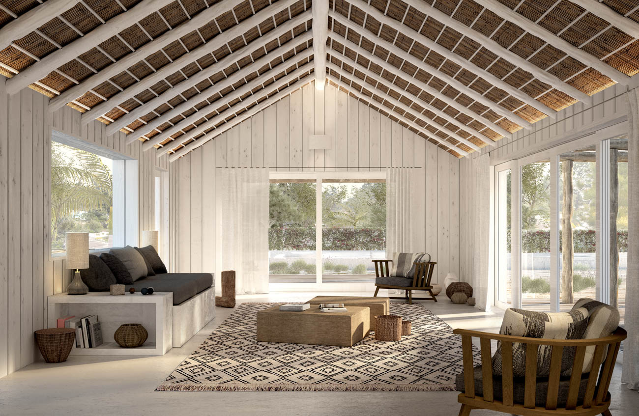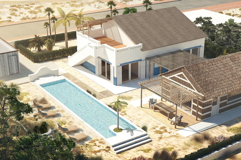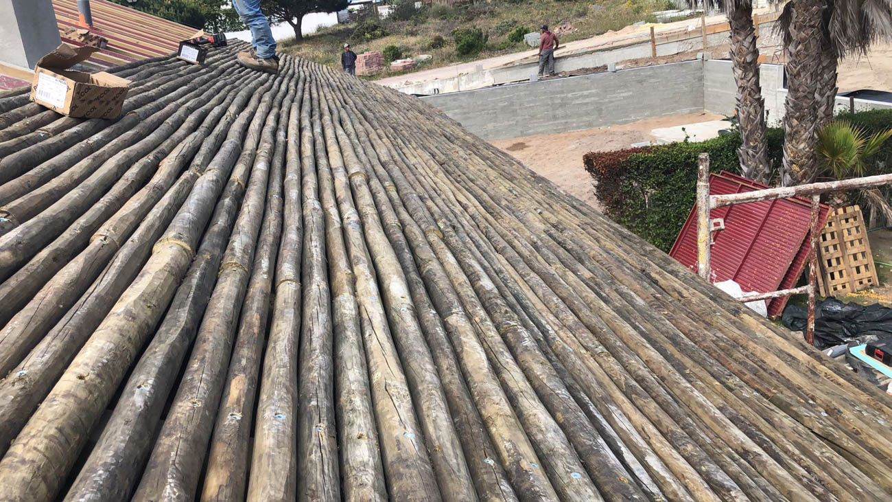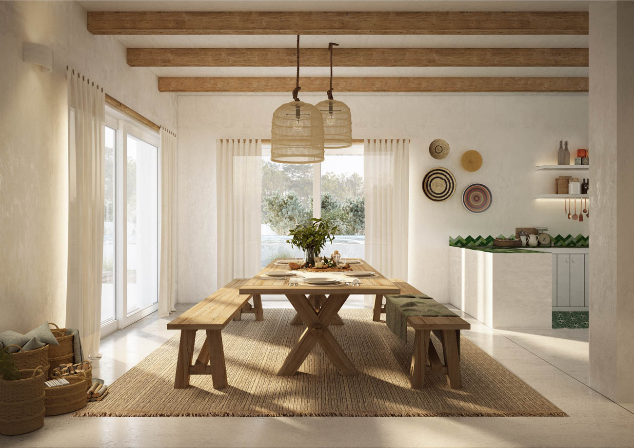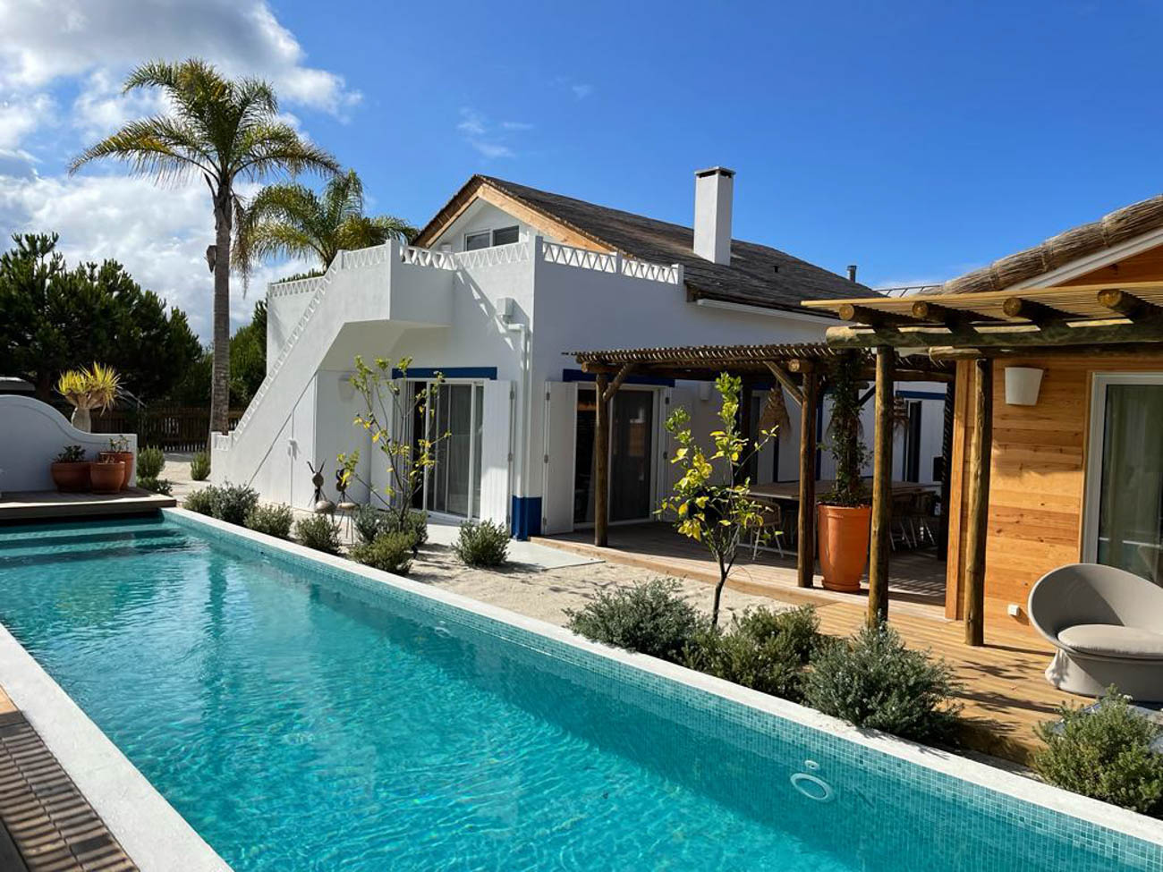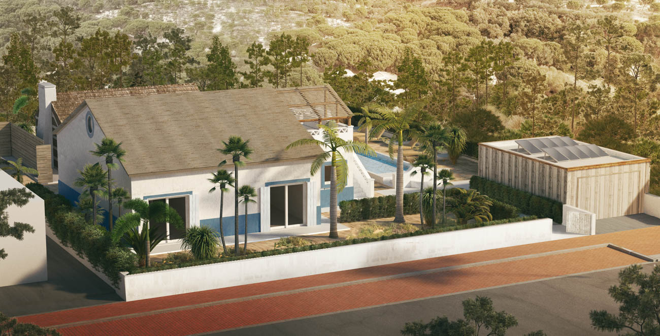 Housing type T6 – Rehabilitation of housing in a reinforced concrete structure, using rehabilitation techniques with local materials, eucalyptus and other wood in the composition of new structural elements, thermal reinforcements, execution of a swimming pool and implementation of a B.C. House with attic as annex.