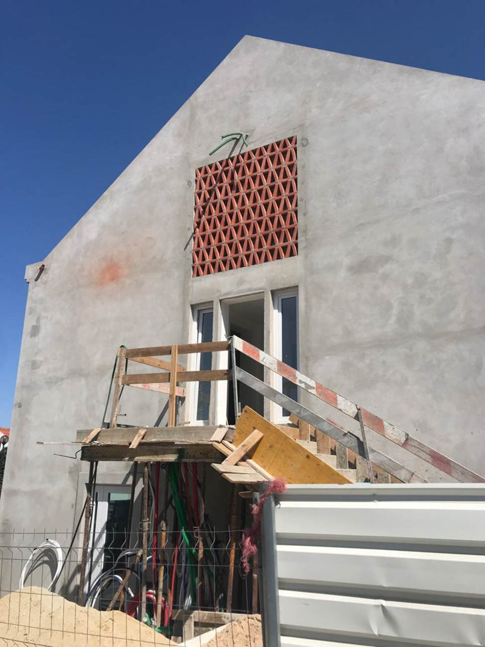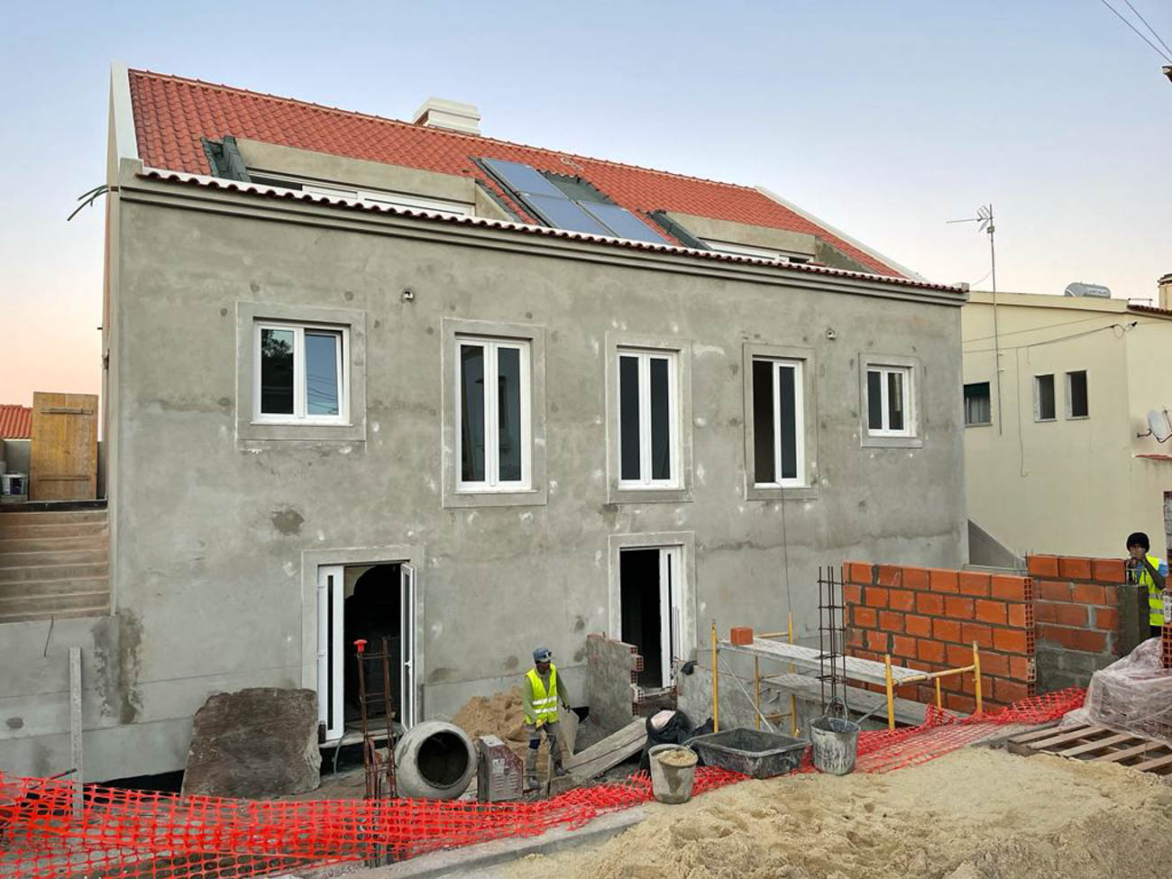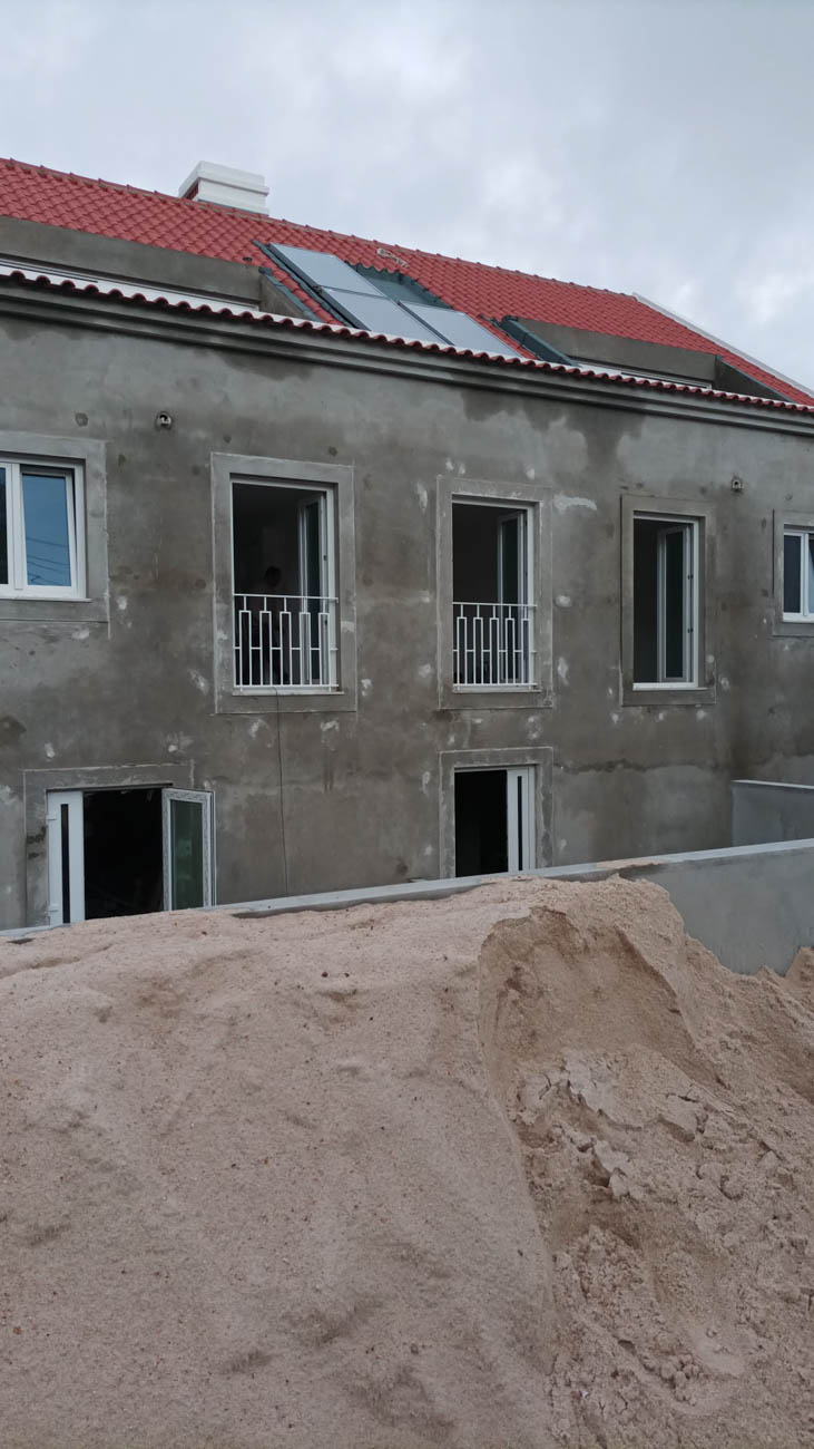 Building with two floors, 2 stores on the ground floor and 3 apartments on the upper floor with typologies from T1 to T2. Reinforced Concrete Structure, Infrastructures and traditional terracotta-based materials. Exterior paving works.