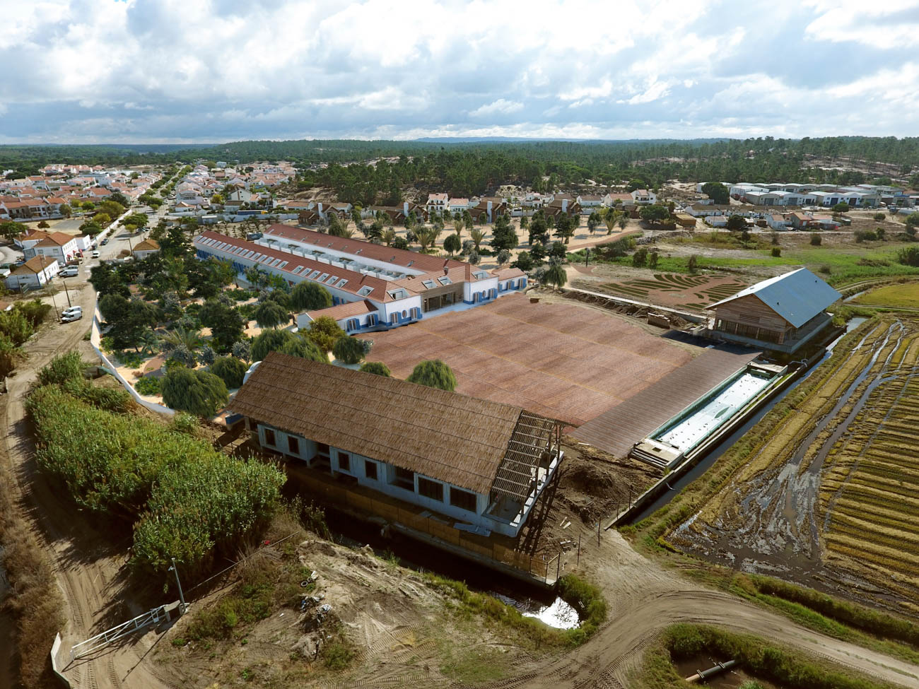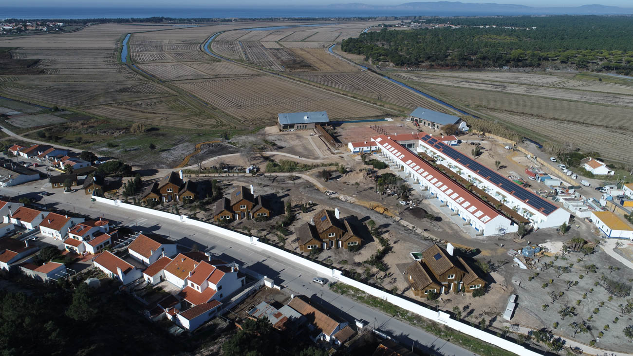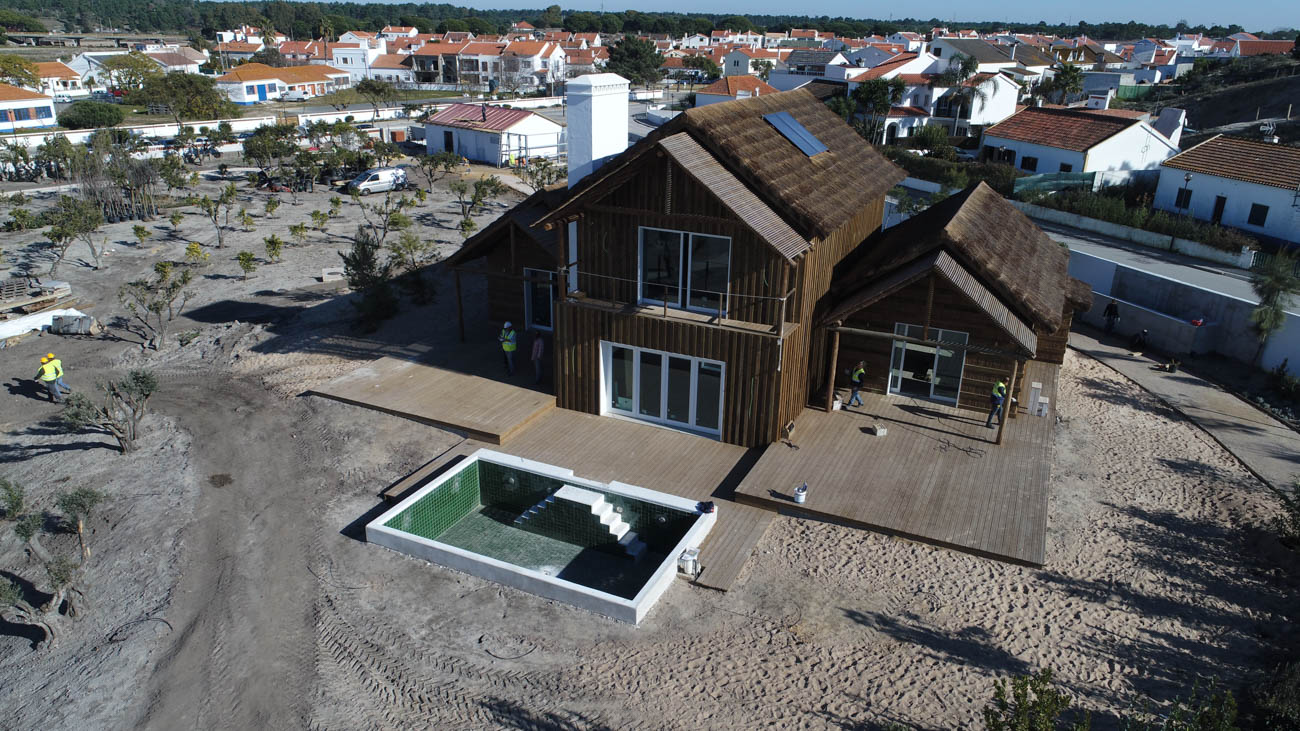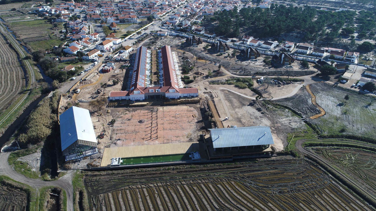 The work carried out refers to the construction of several buildings separately intended for Hotel (73 Rooms), Restaurant, SPA, Villas, Cinema, Parking and Landscape. Its foundation was built using molded walls into the surroundings and the foundation were built using piles. The main structures were made in reinforced concrete, but also in solid wood logs in some of the buildings. The coverings were mostly carried out in a traditional and manual way, using techniques from the Grândola area and materials and wood from the region, duly treated. All infrastructures were developed with sustainability, using, for example, water reuse and solar energy. All security and online assessment systems were guaranteed through the implementation of centralized technical management systems.