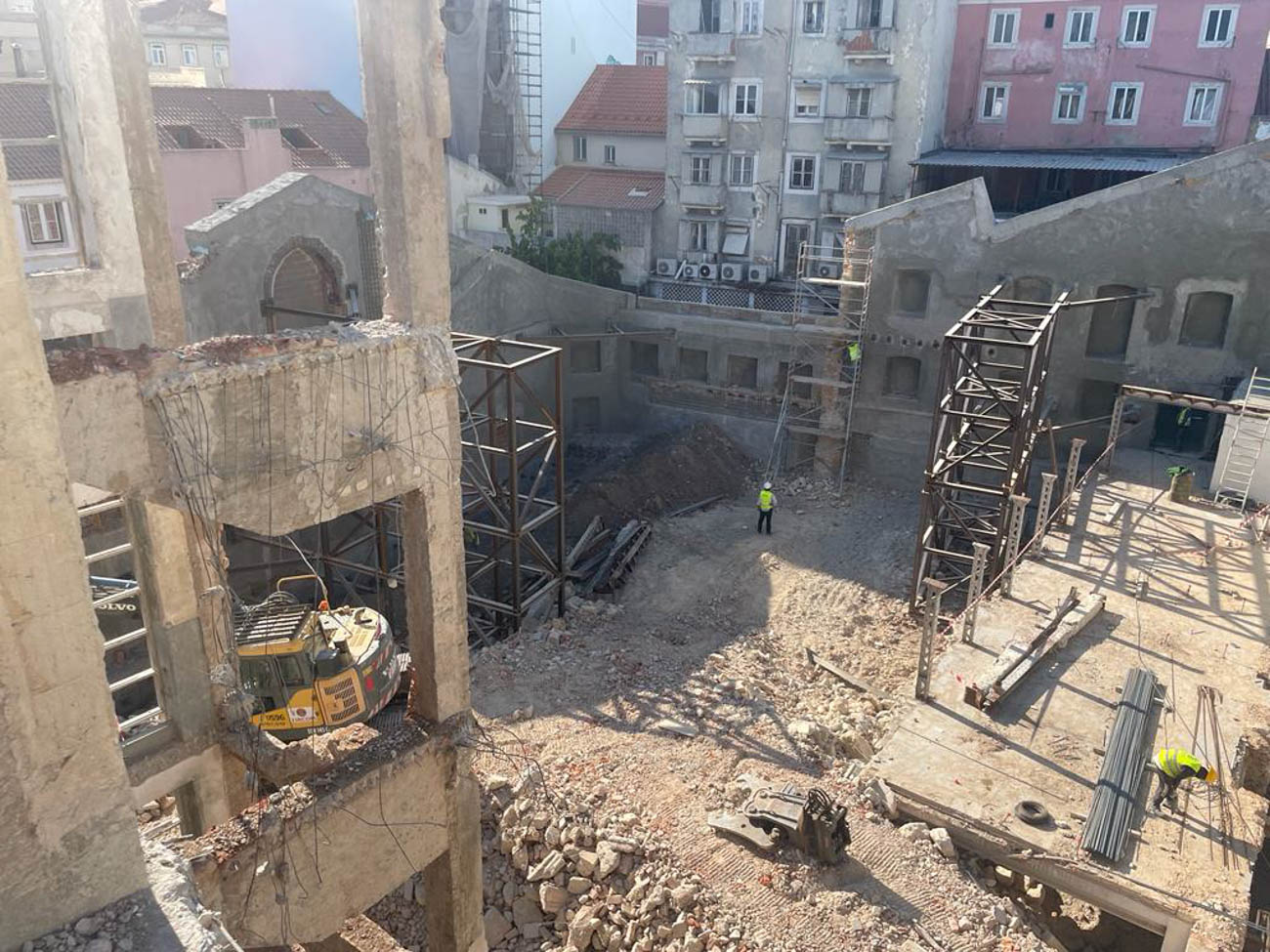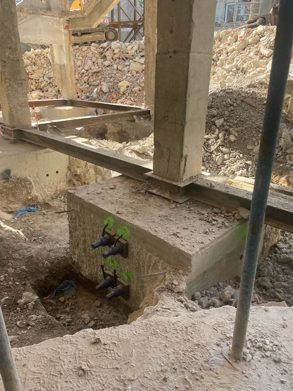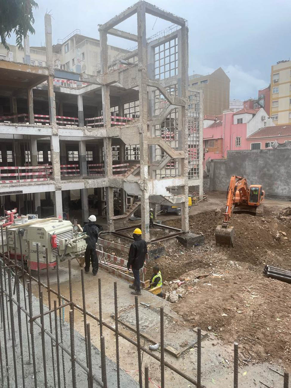 Block B, with total interior demolition, reinforcement facades and suspension for excavation of 3 levels for parking, with retaining walls with anchoring, and nailing.