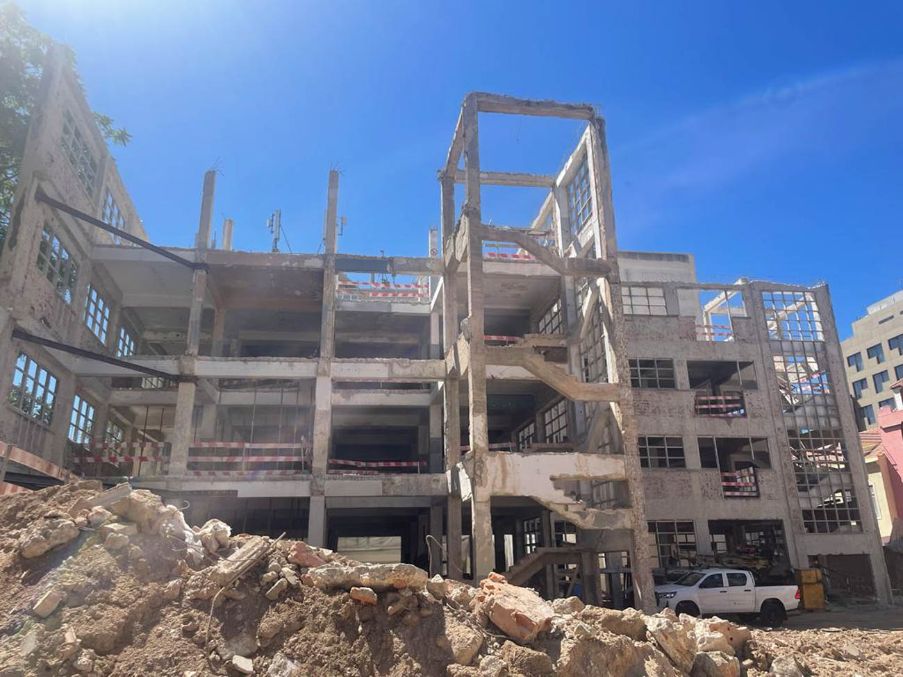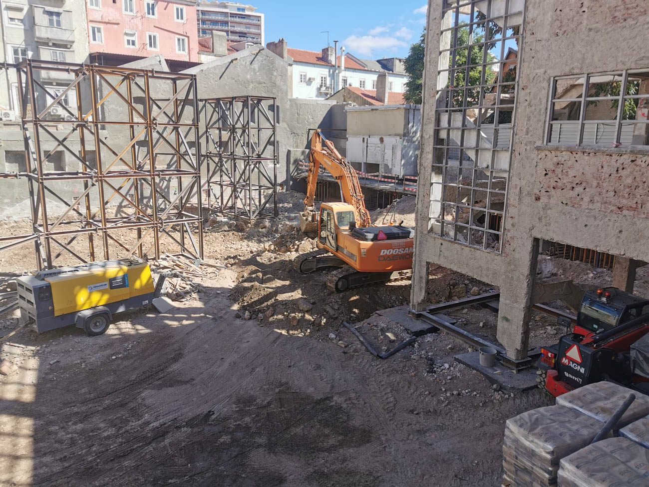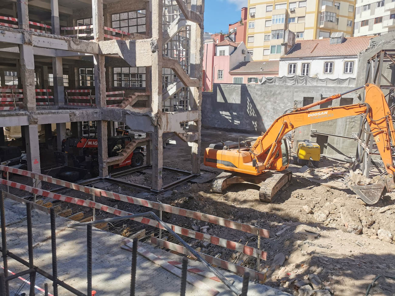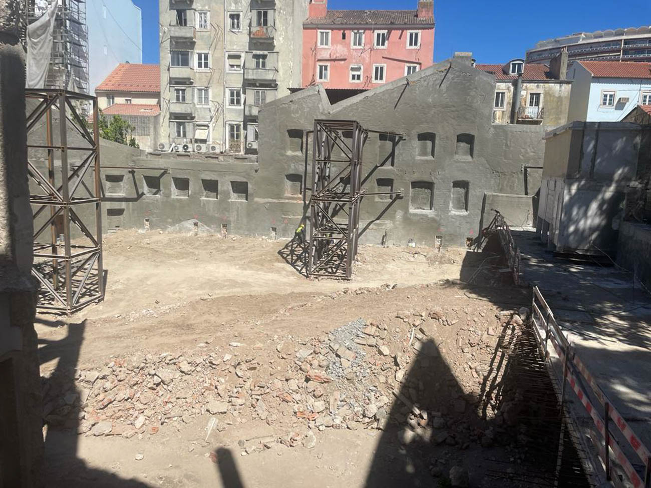 Block B, with total interior demolition, reinforcement facades and suspension for excavation of 3 levels for parking, with retaining walls with anchoring, and nailing.