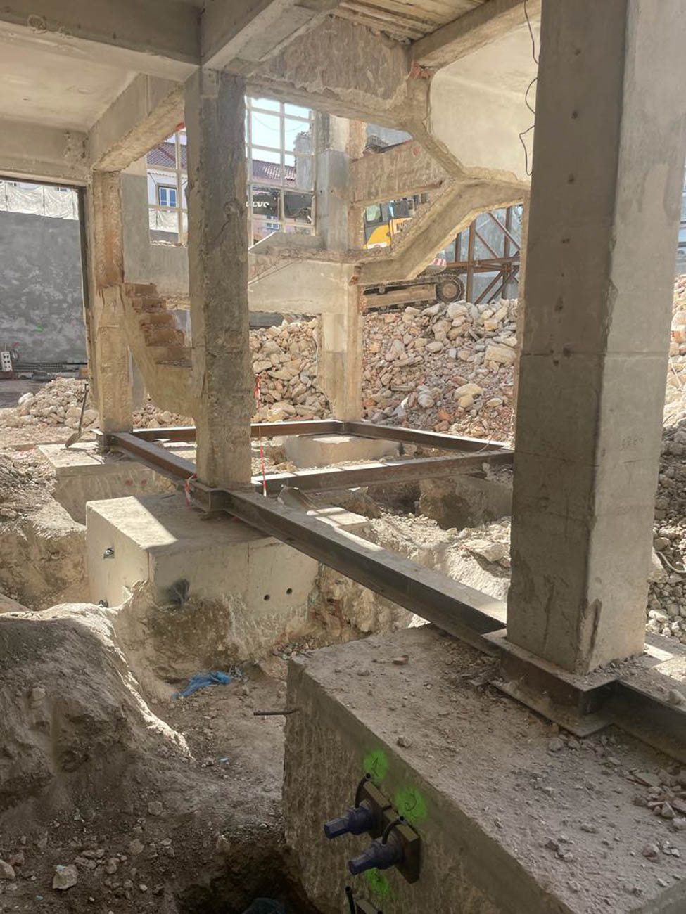 Office Building, consisting of 3 Blocks. Block A, with reuse and reinforcement of existing reinforced concrete structural beams using micropiles, metal profiles and piping.