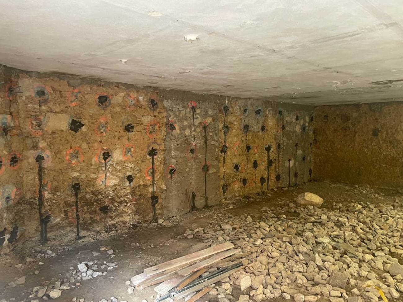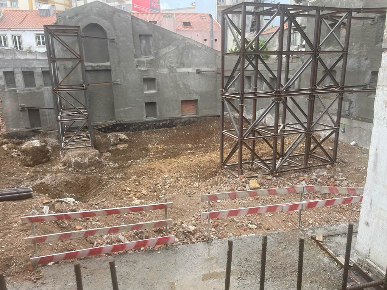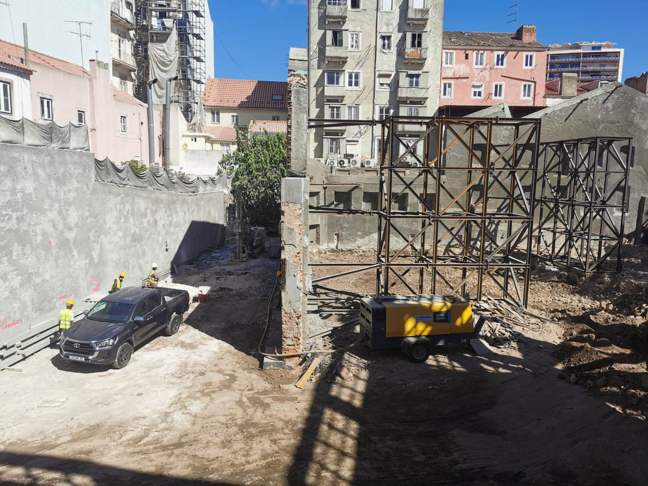 Block C, with drilling and sealing of vertical metal profiles, suspension for the construction of an access ramp and the building’s metal structure.